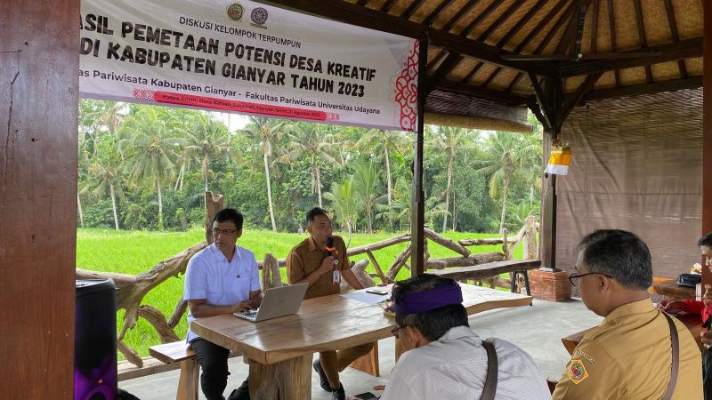 Di Kabupaten Gianyar saat ini telah ditetapkan 42 desa wisata belum diimbangi dengan kemampuan sumber daya manusia di desa tersebut untuk mengelola sistem ekonomi kreatifnya. "Tahun 2023 merupakan awal kegiatan pemetaan potensi desa kreatif dimana telah ditentukan 14 (empat belas) desa di 7 (tujuh) kecamatan Kabupaten Gianyar sebagai Desa Kreatif," ujarnya.