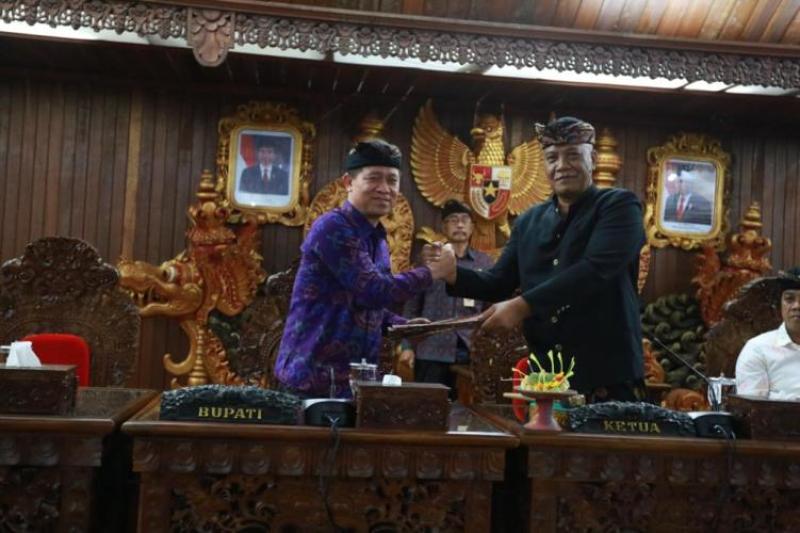 Di akhir penetapan, Bupati Suwirta pada kesempatan itu sangat mengapresiasi Dewan karena berbulat tekad agar Rancangan Peraturan Daerah yang telah kita sepakati dapat menjadi regulasi dalam melaksanakan pelayanan kepada masyarakat khususnya di bidang pemberian layanan pengesahan RPTKA Perpanjangan.