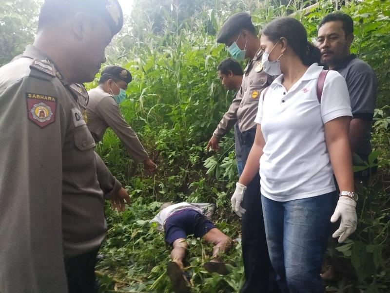 Peristiwa yang cukup menggegerkan warga setempat itu terjadi Selasa  (10/3) pukul 15.00 Wita.Korban ditemukan di kebun jagung berjarak 50 meter dari rumahnya.