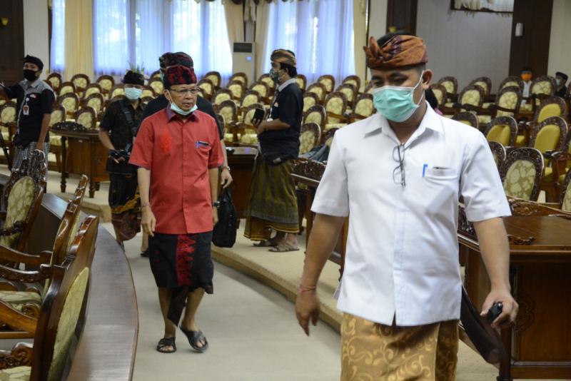 “Saya mohon izin maskernya dibuka. Karena tadi saya dapat laporan, semua yang hadir sudah mengikuti rapid test dan hasilnya negatif semua,” kata Koster, mengawali sambutannya dalam rapat yang dipimpin langsung oleh Ketua DPRD Provinsi Bali I Nyoman Adi Wiryatama, itu.