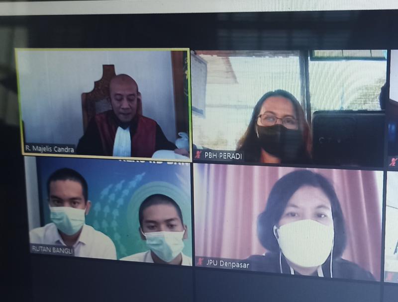Bali Tribune/ Kedua terdakwa mendengar putusan melalui video jarak jauh di Rutan Bangli.