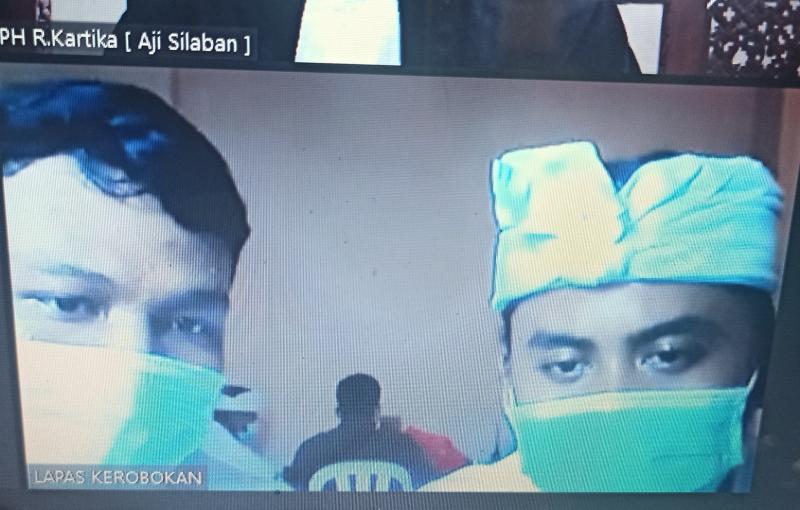 Bali Tribune/ Kedua terdakwa saat dihadirkan dalam sidang virtual di PN Denpasar