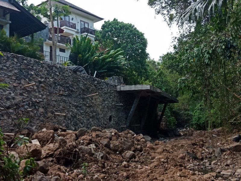PEMBUANGAN – Kondisi pembangunan sebuah villa di Desa Tegalmengkeb, Kecamatan Selemadeg Timur, Tabanan, yang diduga melanggar sepadan sungai.
