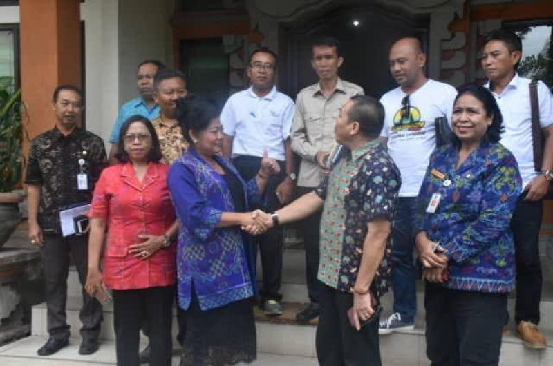 BALI TRIBUNE - Bupati Karangasem I Gusti Ayu Mas Sumatri didampingi Staf Ahli Pemerintahan Wayan Sutapa dan Kadis Sosial Puspa Kumari menerima kehadiran perwakilan Kemensos RI Y. Suemartoko dan Dian Premadi serta Direktur Rehabilitasi Sosial Tuna Sosial Kemensos RI Dr. Sonny W Manalu MM, Jumat (9/11) kemarin. Kehadiran pejabat di Kementrian Sosial itu guna membahas program Desaku Menanti yang telah dikerjakan dari bulan Agustus lalu.  Hadir pula  Nyoman Wariati Dinas Sosial Provinsi Bali, Ketua Lembaga Kesejahteraan Sosial (LKS)  Karangasem, Sekcam Kubu Komang Sumerta, perwakilan-perwakilan Dinas PUPR,  PDAM Karangasem,  BPD Karangasem,  Bappelitbangda, Kadishub dan OPD terkait lainnya.  Kadissos Puspa Kumari melaporkan, pembangunan untuk Program Desaku menanti mengalami beberapa permasalah diantaranya terbentur dengan digelarnya Usaba di lokasi. Kemudian beberapa masalah teknis yang diharapkan dalam rapat evaluasi didapatkan jalan kelurnya bersama.  Ia melaporkan bahwa darii Dinas Sosial  siap memantau, keterlibatan sinergitas OPD yang lain seperti diharapkan Bupati. Untuk saat ini beberapa bantua CSR telah terlaksana. PLN dan PDAM sudah memasang pipa air dan listrik. BRI akan menyumbang bilik pertemuan, BPD akan menyumbangkan MCK (Mandi Cuci Kakus). PU penataan lahan, pengukuran, alat berat semua telah difasilitasi.  “Namun tentu beberapa kendala masih terjadi dilapangan utamanya dalam menyakinkan masyarakat bahwa program dari Pusat ini justru akan berdampak positif terhadap kehidupan mereka nantinya,”terangnya. Apalagi belakang tersiar isu ada yang terserang penyakit lantaran wilayah pembangunan diyakini memiliki unsur niskala. “Ini pun telah kami lakukan pendekatan secara niskala dengan menggelar ritual khusus,” ujarnya Puspa Kumari.  Bupati Mas Sumatri mengatakan, Ia tidak mau ada keterlambatan dalam pelaksanaan program Desaku Menanti di Kecamatan Kubu. Kaitannya dengan adanya kendala teknis,Usaba sampai masalah niskala,tidak boleh dijadikan alasan pembangunan telat.  Bupati menambahkan, pendekatan oleh Camat dan Kepala Desa dengan kontraktor serta masyarakat harus lebih dimaksimalkan agar dapat menyelesaikan kegiatan ini tepat waktu.  Jika ditemukan permasalahan seperti masih kurangnya beberapa unit yang belum disesaikan, pihaknya meminta agar Kadis Sosial memerintahkan para OPD terkait.  “Cari kontraktor atau pemborong yang bagus, yang berkualitas, harus cari yang bagus. Jangan berikan masyarakat kualitas bangunan yang buruk. Jika PU ada kesulitan silakan disampaikan, agar segera dicari dan diselesaikan masalahnya. Lengkapi pula pembuatan taman. Semua bisa diselesaikan jika bekerja dengan kebersamaan dan secara gotong royong,” tegasnya.
