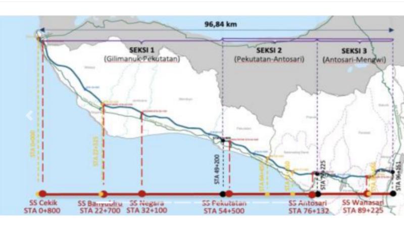 Bali Tribune / JALAN TOL - Gambar tiga seksi atau bagian pembangunan ruas jalan tol Gilimanuk-Mengwi