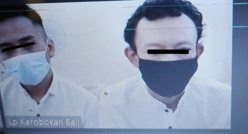 Bali Tribune/ Kedua terdakwa saat menjalani sidang secara virtual dari LP Kerobokan.