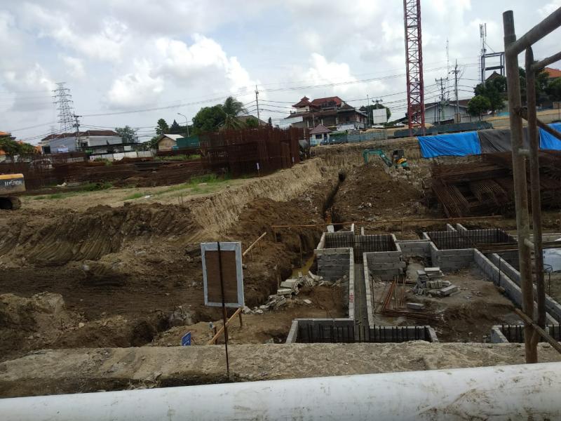 Pantauan, Senin (3/6),  sejumlah pekerja terlihat sedang menggarap pondasi bangunan, seperti pengerukan lubang pondasi dan penyiapan rangka cakar ayam. Dua tower juga sudah berdiri.