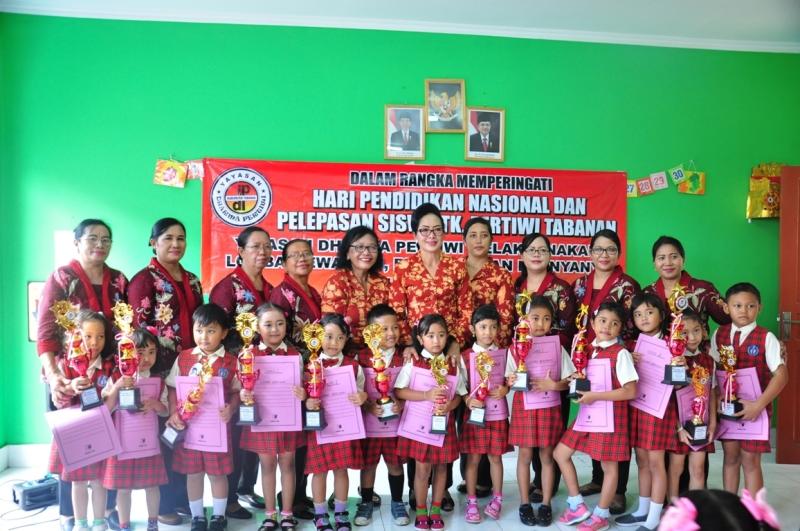 BALI TRIBUNE - Dalam rangka memperingati Hari Pendidikan Nasional dan Pelepasan TK Pertiwi Tabanan, Yayasan Dharma Pertiwi Tabanan mengadakan berbagai lomba, diantaranya lomba bernyanyi, mewarnai dan bersyair, Selasa (12/6).