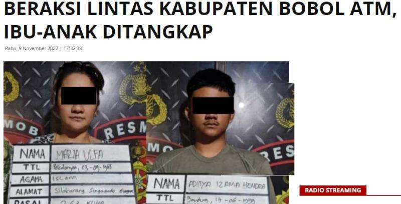 Pelakunya ibu-anak yaitu Maria Ulfa (42) dan Aditya Izama Hendra (23). Tersangka Maria merupakan residivis ini juga mengajak temannya, Siti Sobariah (50).