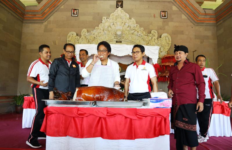 Giri Prasta ‘Kampanyekan’ Daging Babi Aman Dikonsumsi, Gelar Pesta Makan Babi Guling di Puspem Badung