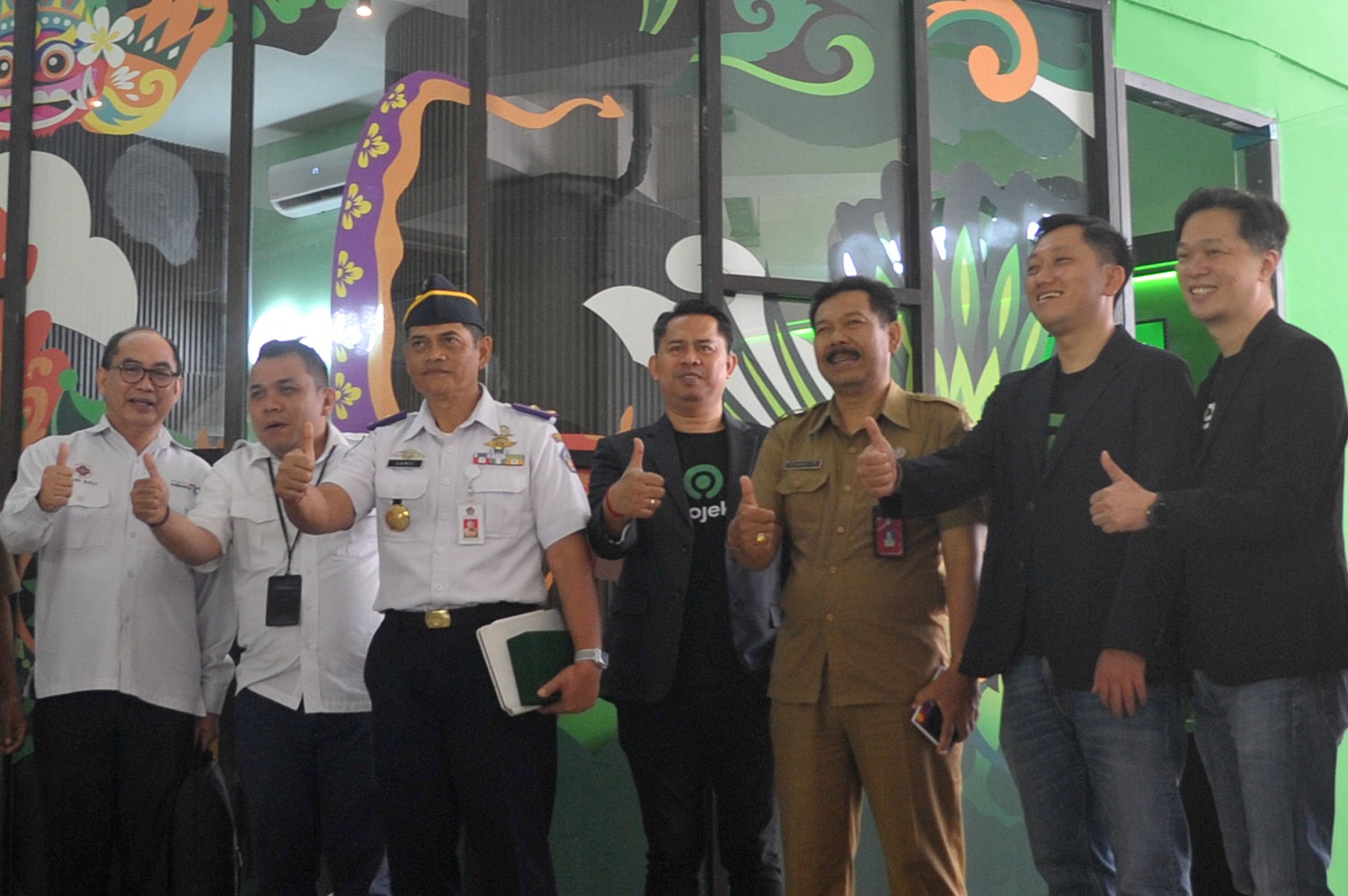 Bali Tribune / KIKA - Perry Markus, Sekretaris PHRI Bali, Aprizal, Co-GM Angkasa Pura I Gusti Ngurah Rai, I Gde Wayan Samsi Gunarta, Kepala Dinas Perhubungan Provinsi Bali, Gede Manggala, Head of Regions & External Affairs Gojek, Ngakan Putu Triariawan, Kepala Bidang Industri Pariwisata Dinas Pariwisata Kabupaten Badung, Steven Halim - Head of Revenue Transportation & Logistic Gojek dan Jeffry Johannes, Strategic Region Head Gojek East Java, Bali, Nusra