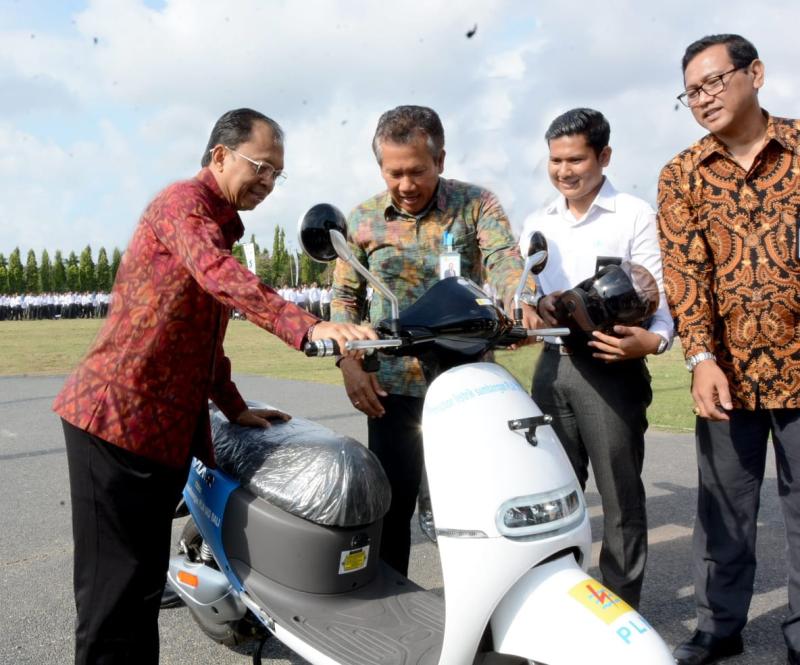 BALI TRIBUNE Pemerintah Provinsi Bali di bawah kepemimpinan Gubernur Wayan Koster berkomitmen mewujudkan kemandirian energi dan menjadikan Bali sebagai pulau yang bersih, indah dan hijau. Guna merealisasikan komitmen tersebut, Pemprov Bali akan segera merancang Peraturan Daerah (Perda) Tentang Rencana Umum Energi Provinsi Bali dan akan diikuti penerbitan Pergub Pengelolaan Energi Bersih di Provinsi Bali. Penegasan itu diutarakan Gubernur Wayan Koster kepada awak media usai mengikuti Apel Pringatan Hari Listrik Nasional ke-73 Tahun 2018 di Lapangan Puputan Margarana Niti Mandala, Denpasar, Sabtu (27/10). Menurut Koster, kedua regulasi tersebut merupakan implementasi komitmen Pemprov Bali dalam mengembangkan dan meningkatkan pemanfaatan energi bersih terbarukan, sebagai alternatif yang paling tepat untuk memenuhi kebutuhan listrik Bali sebagai daerah tujuan wisata. Langkah yang akan ditempuh dan diatur dalam regulasi antara lain mengurangi penggunaan bahan bakar minyak serta melakukan konversi penggunaan batubara ke gas. Upaya lain yang lebih konkrit adalah penggunaan sepeda motor listrik yang akan dicanangkan dalam waktu dekat. Koster menambahkan, Kementerian ESDM telah menjadikan Bali sebagai daerah percontohan penggunaan sepeda motor listrik. Langkah ini mendapat dukungan PT. PLN Distribusi Bali yang pada peringatan Hari Listrik ke-73 menyerahkan satu unit sepeda motor listrik kepada Gubernur Koster. Tak hanya menerima secara simbolis, Koster pun sempat mencoba mengendarai sepeda listrik bantuan PLN. “Enak dikendarai, tanpa suara dan tanpa emisi gas buang sehingga bisa mengurangi polusi suara dan polusi udara. Yang terpenting, dengan menggunakan sepeda listrik, masyarakat bisa menghemat pengeluaran,” komentarnya usai mencoba sepeda listrik. Koster akan segera menindaklanjuti program percontohan ini dan berencana mengawalinya dari lingkungan birokrasi serta melakukan pendekatan dengan manajemen hotel. Pada bagian lain, Koster juga menyampaikan apresiasi atas keberhasilan PT. PLN karena terhitung sejak Oktober 2018, Rasio Elektrifikasi (RE) Provinsi Bali tercatat sudah mencapai 100 persen. Itu berarti, 100 persen Penduduk Bali telah terjangkau listrik. Menurut Koster, prestasi ini patut diapresiasi karena Bali menjadi daerah pertama di Indonesia yang mencapai RE 100 persen. “Terima kasih untuk jajaran PLN, ini merupakan kado buat saya sebagai gubernur yang baru. Saya yakin, upaya mewujudkan RE 100 persen bukanlah hal yang mudah, butuh kerja keras dan perjuangan,” imbuhnya. Namun demikian, ia tetap mengingatkan kompleksitas permasalahan energi yang akan dihadapi Bali di masa-masa mendatang. Hal ini terkait dengan tingkat pertumbuhan konsumsi listrik Bali yang cukup tinggi yaitu sebesar 3,3 persen. Persoalan lain, Bali juga tidak mempunyai sumber energi konvensional seperti minyak, gas dan batubara. Selain itu, potensi energi terbarukan yang dimiliki Bali juga tidak terlalu besar. Koster berpendapat, ke depannya Bali perlu mengupayakan terobosan serta pemanfaatan teknologi terbarukan seperti tenaga surya, tenaga air, tenaga angin, biomas dan arus laut. Ia berharap, suatu saat Bali benar-benar bisa mandiri dalam pemenuhan kebutuhan energi dan mengurangi ketergantungan dari Jawa. Sementara itu, General Manager (GM) PLN Distribusi Bali Nyoman Suwarjoni Astawa melaporkan bahwa secara umum kondisi kelistrikan Bali relatif lebih baik dibandingkan dengan sejumlah daerah di Indonesia. Daya mampu pembangkit yang ada di Bali saat ini sebesar 885 MW dengan beban puncak tahun 2018 mencapai 845 MW. Dengan kata lain, Bali mempunyai cadangan daya sebesar 40 MW. Selain itu, daya mampu pembangkit di Bali juga masih dibantu oleh kabel laut sebesar 340 MW. Sejalan dengan komitmen Gubernur Koster, PLN juga berkomitmen mewujudkan kemandirian listrik di Daerah Bali.
