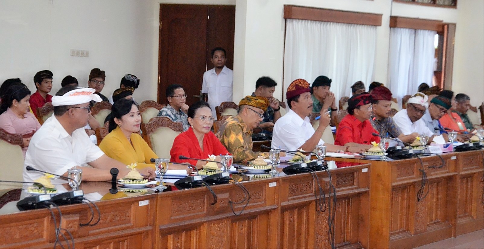Bali Tribune/ KUNJUNGAN - Gubernur Bali Wayan Koster didampingi Sekretaris Daerah Provinsi Bali Dewa Made Indra menerima Kunjungan Kerja Reses Komisi VII DPR RI di ruang rapat Gabungan DPRD Provinsi Bali, Kamis (14/2).
