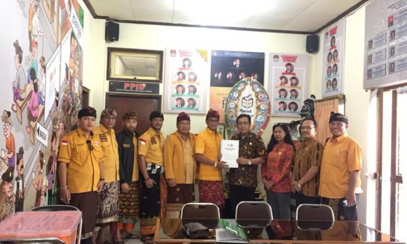 BALI TRIBUNE - DPD Partai Hanura Provinsi Bali mendaftarkan 55 orang nama bakal calon legislatif (Bacaleg) tingkat Provinsi Bali ke Kantor Komisi Pemilihan Umum (KPU) Provinsi Bali, Selasa (17/8/2018). Pendaftaran dipimpin langsung Ketua DPD Partai Hanura Provinsi Bali, I Made Sudarta. Kepada wartawan usai pendaftaran, Sudarta mengaku pihaknya optimis bisa mencapai target satu fraksi atau 5 kursi di DPRD Provinsi Bali pada Pileg 2019 mendatang. Selain itu, pihaknya juga yakin akan mencapai satu fraksi di DPRD Kabupaten/ Kota se-Bali atau minimal 4 hingga 5 kursi dan 1 kursi DPR RI. “Target ini realistis. Dengan kerja keras semua kader, Caleg dan struktur partai, kami optimis meraih target ini,” tandas Sudarta. Terkait komposisi pencalegan di semua tingkatan, baik DPRD Kabupaten/ Kota, DPRD Provinsi Bali dan DPR RI, diakuinya semua sudah terpenuhi. Komposisinya, dari kader sampai 50 persen, 20 persen dari kalangan profesional dan 30 persen kuota perempuan. Dari sisi latar belakang Caleg, cemua anggota dewan petahana atau incumbent di DPRD Kabupaten/ Kota sebanyak 30 orang dan satu orang incumbent DPRD Provinsi Bali, kembali maju bertarung untuk mengamankan posisi Hanura. Selain itu, banyak juga kader muda dan tokoh profesional dengan berbagai latar belakang mumpuni maju sebagai Caleg dari Hanura. Dengan kekuatan para caleg yang punya modal popularitas, magnet elektoral dan modal sosial kuat, Partai Hanura optimis bisa bersaing dengan partai besar maupun juga partai baru. Pihaknya mengajak parpol dan Caleg bersaing secara sehat untuk membangun Bali seutuhnya. “Konsolidasi partai sudah cukup bagus. Banyak kader dan DPC sudah melaksanakan konsolidasi dan sosialisasi di daerah masing-masing. Dengan kondisi sekarang yang lebih baik, kami optimis 40 sampai 45 kursi di kabupaten/ kota,” kata Sudarta. Tampilnya dua anggota DPD RI Dapil Bali, yakni I Gede Pasek Suardika dan I Made Arimbawa alias Lolak, sebagai calon anggota DPR RI, diyakini Sudarta akan memuluskan target ini. Ia bahkan sangat optimis minimal satu kursi DPR RI akan menjadi milik Hanura. “Dua tokoh ini cukup kuat dengan basis suara dan massa yang militan. Jadi kami optimis DPR RI minimal dapat satu kursi. Apalagi ada anak muda juga maju DPR RI bisa menjadi penopang perolehan suara partai,” tegas Sudarta.