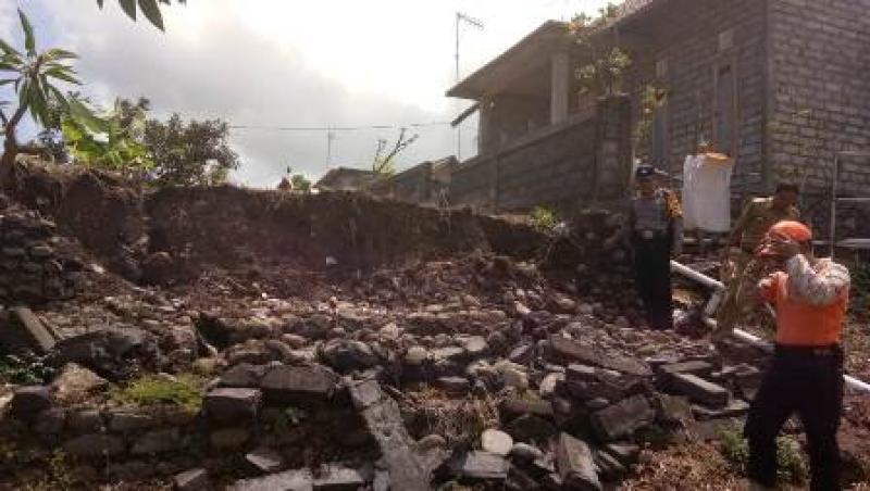 BALI TRIBUNE - Cuaca ekstrem di masa peralihan antara musim kemarau dan musim penghujan (pancaroba) yang terjadi sejak beberapa hari belakangan ini kembali menimbulkan musibah. Akibat guyuran hujan deras Selasa (6/11) dini hari, tanah longsor kembali melanda wilayah Jembrana dan mengakibatkan kerusakan bangunan. Tanah longsor akibat hujan deras kali ini terjadi di Kelurahan Gilimanuk, Melaya. Setelah beberapa bulan lamanya dilanda musim kemarau berkepanjangan, hujan deras baru pertamakalinya mengguyur wilayah di ujung barat Pulau Dewata ini pada Selasa dini hari. Hujan dengan itensitas sedang yang berlangsung beberapa jam hingga Selasa pagi tersebut menyebabkan tanah longsor. Akibatnya tembok penyengker Balai Lingkungan Jineng Agung amblas dan jebol. Tembok penyengker yang terletak di sisi timur jalan utama menuju Pelabuhan Gilimanuk itu jebol diduga lantaran pondasinya tidak kuat menahan air hujan deras yang mengguyur hampir lima jam. Sejumlah warga Gilimanuk mengatakan hujan deras mulai turun sekitar pukul 01.00 Wita dan berlangsung cukup lama. Sebelum tembok penyengker ambruk, areal Balai Lingkungan Jineng Agung tersebut diketahui sempat tergenang air hujan. Kepala Lingkungan Jineng Agung¸ Gede Yasa yang rumahnya bersebelahan dengan balai lingkungan itu mengatakan sekitar pukul 03.00 Wita pondasi tembok penyengker di bagian barat atau di pintu masuk balai lingkungan yang posisinya rendah amblas dan tembok di atasnya ambruk. Tembok penyengker dari batako itu ambrol sekitar 10 meter. "Sekitar pukul 03.00 Wita saya kaget mendengar suara gemuruh. Saya kira ada truk kecelakaan. Setelah saya lihat keluar ternyata tembok penyengker itu yang roboh," ujarnya. Ia menduga ambrolnya tembok penyengker itu akibat tanah urugan di areal balai lingkungan labil. Selain itu juga pondasi tembok penyengker dari batu kali itu diakuinya tidak berisi lubang pembuangan air sehingga tidak kuat menahan tekanan dari genangan air di atasnya. "Karena hujan deras yang lama dan tidak ada lubang pembuangan air lalu mengenang dan menekan senderan hingga jebol," tandasnya. Lurah Gilimanuk I Gede Wariana Prabawa dikonfirmasi Selasa kemarin mengatakan pihaknya sudah melaporkan kejadian longsor ini ke pihak BPBD Kabupaten Jembrana. "Untuk pembersihan kami akan bergotong royong pada hari Jumat. Kami juga besurat ke BPBD agar bisa diberikan bantuan," ungkapnya. Kalak BPBD Kabupaten Jembrana, I Ketut Eko Susila AP mengatakan pihaknya sudah menurunkan personel ke lokasi. "Untuk tembok penyengker kita akan bantu pembersihannya saat gotong royong Jumat nanti. Begitu pula untuk bantuan perbaikan," ungkap mantan Lurah Gilimanuk ini. Selain itu hujan deras juga mengakibatkan sebuah bangunan milik warga di Jalan Teratai, Banjar Dangin Pangkung, Pekutatan ambruk. Perbekel Pekutatan, I Gede Silagunada dikonfirmasi melalui Kasi Pelayanan, I Nengah Darmayana mengatakan bangunan yang ambruk tersebut merupakan bangunan dapur milik Ni Nyoman Sari (78) yang sudah belasan tahun ditinggalkan pemiliknya tinggal di Denpasar. “Itu bangunan lama, roboh karena hujannya deras, memang sudah reot dan tidak berfungsi karena pemiliknya sudah lama tinggal di Denpasar. Katanya memang mau dibongkar,” ungkapnya. Selain itu hujan deras juga menyebabkan sejumlah ruangan di Kantor Perbekel Pekutatan bocor. “Mungkin karena gempa, ada sekitar 20 genteng yang bergeser, tapi karena baru ada hujan sehingga baru diketahui bocor,” ujarnya. Menurutnya ada dua ruangan di lantai dua yang bocor yakni ruang Kasi Pelayanan dan Rauang Rapat. “Kami sudah gotong-royong untuk memperbaikinya, sehingga tidak mengganggu aktivitas kantor apalagi sekarang sudah mulai musim penghujan,” tandasnya.