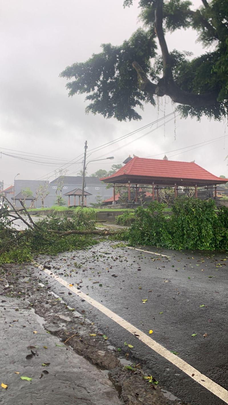 Sementara itu di ruas jalan Merdeka, tepatnya di Kelurahan Bebalangm, Bangli, dahan pohon beringin di depan crematorium bebalang patah. Untung dalam kejadian tersebut  tidak ada kendaraan yang melintas. Upaya evakuasi dahan  pohon dilakukan petugas dari DLH dan BPBD.