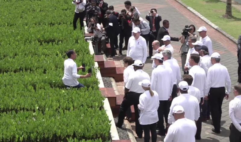 balitribune.co.id | Denpasar - Usai secara resmi membuka perhelatan KTT Presidensi G20, Selasa (15/11), keesokan harinya pada hari kedua, Presiden RI Ir H Joko Widodo (Jokowi) mengajak para kepala negara dan delegasi KTT G20 melihat langsung salah satu kawasan hutan mangrove Indonesia juga melaksanakan penanaman pohon mangrove di kawasan rehabilitasi dan konservasi Tahura Mangrove Ngurah Rai seluas 1.373,5 hektar, di Desa Pemogan, Kecamatan Denpasar Selatan, Rabu (16/11).