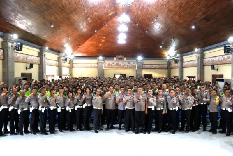 BALI TRIBUNE - Kapolda Bali, Irjen Pol Petrus R. Golose didampingi Waka Polda Bali, Brigjen Pol I Wayan Sunartha beserta sejumlah pejabat utama Polda Bali memberikan pembekalan kepada Sub Satgas III (Pengawalan), Bantuan Kendali Operasi (BKO) dari Mabes Polri dalam rangka pengamanan Annual Meeting IMF-World Bank 2018 bertempat di gedung Perkasa Raga Garwita Mapolda Bali, Selasa (2/10) malam. Sebanyak 1.982 personel Satgas III dilibatkan untuk melakukan pengawalan terhadap VVIP dan VIP yang akan hadir dalam pelaksanaan event besar ini, di antaranya 451 personel dari Polda Bali dan Mabes Polri sebanyak 1.532 personel. Dalam arahannya, jenderal polisi bintang dua ini menyampaikan bahwa Satgas Pengawalan merupakan Satgas terpenting karena terkait dengan kelancaran arus/rute pergeseran para delegasi dari Bandara Internasional I Gusti Ngurah Rai ke hotel maupun ke tempat kegiatan. Oleh karena itu, diharapkan seluruh personel yang terlibat memperhatikan jalur yang akan dilewati, hindari kesalahan sekecil apapun dan bangun komunikasi dengan stake holders terkait selama kegiatan. "Sehingga seluruh kegiatan pengawalan dapat berjalan aman dan lancar," ujarnya. Dikatakannya, jika ada permasalahan atau hal yang perlu ditanyakan segera disampaikan demi mendapatkan hasil sesuai yang diharapkan bersama. ”Laksanakan tugas ini dengan enjoy. Anggap saja ini kalian pesiar, tapi memiliki tanggung jawab," imbuhnya.