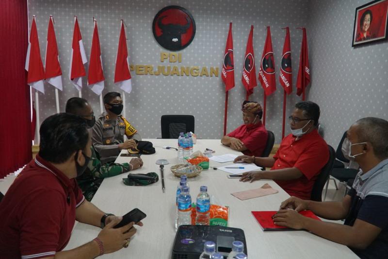 balitribune.co.id | Bangli - Jelang pendaftaran pasang colon bupati dan wakil bupati Bangli, Kapolres Bangli AKBP I Gusti Agung Dhana Aryawan menyambangi masing masing calon di kanator DPC PDI-P Bangli dan DPD II Golkar Bangli, Kamis (3/9) Dalam kesempatan tersebut Kapolres  menegaskan saat pendaftaran tidak ada pengerahan masa.