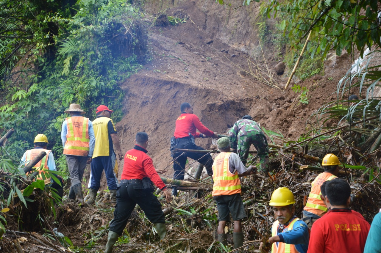Bali Tribune/Suasana proses evakuasi tanah longsor.