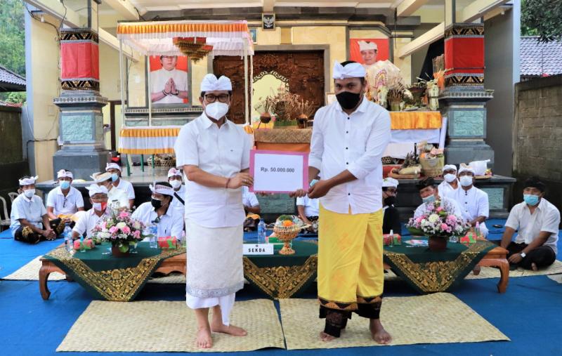 Dalam kesempatan tersebut dan guna mendukung pelaksanaan karya Sekda Adi Arnawa menyerahkan dana punia secara simbolis sebesar Rp 50 juta diterima langsung panitia karya Anak Agung Gede Sanjaya.