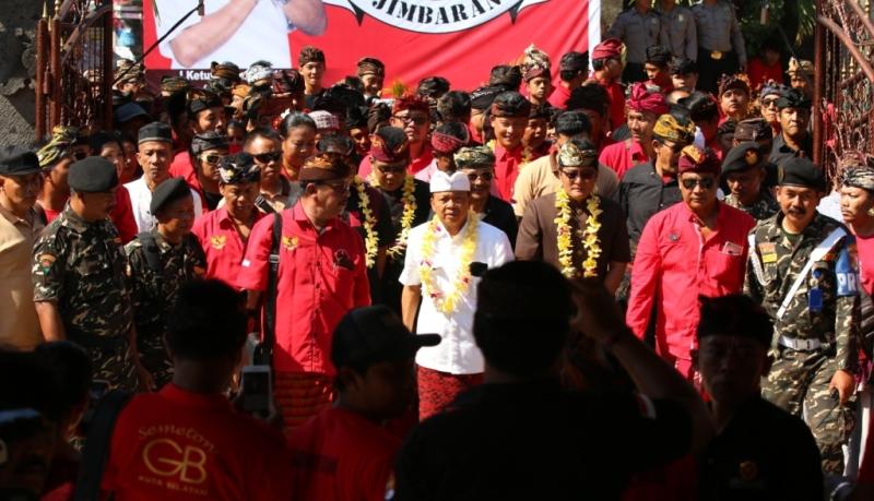 BALI TRIBUNE - Pasangan Calon Gubernur dan Wakil Gubernur Bali Nomor Urut 1, Wayan Koster-Tjok Oka Artha Ardhana Sukawati (Koster-Ace) memastikan keberhasilan pelaksanaan Pola Pembangunan Nasional Semesta Berencana (PPNSB) di Badung akan diimplementasikan di seluruh Bali. Hal ini ditegaskan pasangan Koster-Ace saat menghadiri Pegelaran Budaya dan Deklarasi Kebulatan Tekad, di Banjar Taman Griya, Kelurahan Jimbaran, Kuta Selatan Badung, Selasa (22/5) lalu.  Sekitar 700 warga Banjar Taman Griya menyatakan kebulatan tekad mendukung, memilih dan memenangkan Koster-Ace. Tampak ratusan warga tua-muda dan lintas generasi berbaur menyambut kehadiran Wayan Koster selaku calon gubernur periode 2018-2023. Deklarasi ini juga disaksikan Ketua Tim Pemenangan Koster-Ace Provinsi Bali Nyoman Giri Prasta, Ketua BSPN Provinsi Bali Ketut Suiasa, Ketua Tim Pemenangan Koster-Ace Badung I Gusti Anom Gumanti, anggota Fraksi PDIP DPRD Bali, anggota Fraksi PDIP DPRD Badung, perwakilan partai pengusung seperti Ketua DPD Partai Hanura Bali Made Sudarta, dan tampak hadir pula  Ketua PWNU Bali H. Abdul Aziz Di hadapan ratusan warga, Wayan Koster mengungkapkan berdasarkan survei dari dua lembaga untuk wilayah Kabupaten Badung, Koster-Ace akan menang sekitar 75 persen suara. Kemenangan ini tak lepas dari kepemimpinan Nyoman Giri Prasta sebagai bupati yang merupakan kader terbaik PDI Perjuangan Bali.  "Program dan kebijakan yang dilaksanakan Pak Giri Prasta sangat memihak kepentingan serta kebutuhan masyarakat melalui PPNSB (Pola Pembangunan Nasional Suara Berencana) yang juga tiyang selaku ketua partai ikut menyusunnya," ujarnya. Tambah Koster, oleh DPP PDIP untuk pelaksanaan program pembangunan yang tertuang PPNSB, Kabupaten Badung dijadikan sebagai percontohan  secara nasional khususnya juga di Bali. "Nantinya melalui pola Satu Jalur akan kita terapkan di kabupaten/ kota," sebutnya. Koster membeberkan hasil dua lembaga survei yang menyebutkan Paslon Koster-Ace menang secara mutlak pada Pilgub Bali 2018. "Di delapan kabupaten kita sudah menang sesuai target. Tapi meski begitu, kami tidak ingin lengah. Malah kita lebih genjot dengan kerja keras agar melampaui target," tegasnya. Mengakhiri orasinya, Koster mengucapkan terima kasih terhadap dukungan yang diberikan warga Banjar Taman Griya, Desa Jimbaran. "Astungkara tiyang terpilih, tiyang sampun lascarya ngayah sekala lan niskala," pungkasnya. Sementara itu, Ketua Tim Pemenangan Koster-Ace Provinsi Bali Nyoman Giri Prasta yang juga Bupati Badung, mengakui kerberhasilan pembangunan di Badung yang dipimpinnya, tak lepas dari arahan Wayan Koster. Giri Prasta secara terbuka menyatakan Koster adalah gurunya. Guru yang selalu mengajarkan berbuat, kerja, kerja dan kerja untuk masyarakat. Dikatakannyabahwa setelah Koster-Ace terpilih pada 27 Juni 2018, dan kemudian dilantik sebagai gubernur-wakil gubernur Bali, dirinya menyatakan Koster-Ace akan langsung kerja  untuk mewujudkan kesejahteraan untuk masyarakat Bali. "Astungkara setelah dilantik, Pak Koster akan langsung  kerja dan kerja. Prinsip beliau itu adalah ayo kerja, " tegasnya. Ditambahkannya, konsep PPNSB yang dilaksanakan di Badung atas arahan Wayan Koster telah mendapat penghargaan dari pemerintah pusat. "Saya sudah dipanggil Bapak Presiden (Joko Widodo) untuk bertemu secara khusus dengan beliau terkait pelaksanaan PPNSB. Dimana melalui konsep Tri Kona, dari lahir, hidup sampai meninggal semua ditanggung oleh pemerintah Badung," ungkapnya. Dan konsep PPNSB inilah yang akan diterapkan saat Koster-Ace saat memimpin Bali kedepan.
