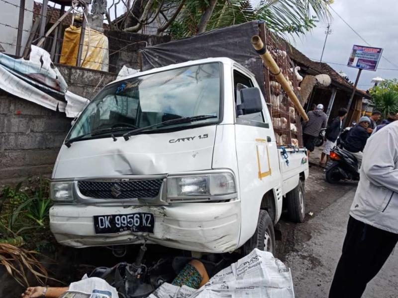 BALI TRIBUNE - Kecelakaan terjadi di Jalan Antasura, Denpasar Utara sekira pukul 14.15 wita, Minggu (15/7). Seorang nenek yang membonceng cucunya tewas ditempat diseruduk dan digilas pikap. Informasi yang berhasil dihimpun di lokasi, sebuah mobil Suzuki Carry DK 9956 KZ ini datang dari arah utara. Mobil diduga berkecepatan tinggi hendak menyalip kendaraan lain, namun tiba-tiba dari arah selatan muncul sepeda motor Vario DK 7852 IO. Kecelakaan pun tak terhindarkan, mobil yang memuat ayam potong ini menabrak motor yang dikendarai oleh seorang nenek yang membonceng cucunya. Sejumlah saksi warga setempat menyenutkan jika mobil Suzuki Carry tersebut hendak menyalip kendaraan lain, namun mendadak motor Vario datang dari arah selatan. Karena tidak bisa mengendalikan mobil menabrak motor. Motor pun terseret dan masuk ke selokan atau got disisi kanan jalan. "Suara benturan keras sekali. Sepertinya mobil Carry ini mau nyalip, orang gigi persenelingnya masih di tiga, dia (sopir) dapat tanya saya nomor ambulan. Perawakannya tinggi sedang, kulit sawo matang, pakai topi, pakaian kaos, karena saya gak punya nomornya dia terus pergi. Katanya si ke Polsek tapi kok infonya gak ke Polsek," ujar Husni (36) pedagang kerai tak jauh dari lokasi. Korban yang diduga tidak memakai helm ini, katanya terseret sekitar 10 meter dengan kondisi motor tergencet dibawah mobil bersama korban. Cucunya sepertinya terlempar dia duduk di tengah jalan, kondisinya lecet di kepala dan wajahnya, dia menangis kasihan," imbuhnya seraya mengungkapkan dia bersama sejumlah warga lainnya segera menolong korban. Sementara itu, dilaporkan, sopir yang membawa muatan ayam tersebut bernama Kumis asal Mengwi. Saat ini sopir tersebut telah diamankan di Pos Pengamanan Tohpati, Denpasar Timur. "Iya dia sudah diamankan di Pos Pol Tohpati bukan hendak kabur kok," ujar salah satu petugas Polsek Denpasar Barat di lokasi. Sementara korban meninggal atas nama Ni Made Adi (50) yang membonceng cucunya perempuan berusia 5 tahun ini merupakan pedagang di Wangaya. Korban merupakan warga Banjar Puduh Kulit, Peguyangan Kaja, Denpasar Utara. Saat ini petugas masih mengupayakan evakuasi mobil Carry tersebut lantaran mobil masuk ke dalam got atau selokan pinggir jalan.