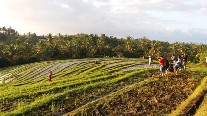 balitribune.co.id | Tabanan - Keindahan alam Desa Wisata Megati, di Banjar Sesandan, Desa Megati, Kecamatan Selemadeg Timur, Tabanan, selain menarik perhatian wisatawan, juga menarik bagi para potographer profesional. Sabtu (13/7), group dari DOSS Camera dan Digital Jakarta yang berjumlah 30 orang mengadakan event Sunrise dan Landscape fotographer di Banjar Sesandan, Megati.