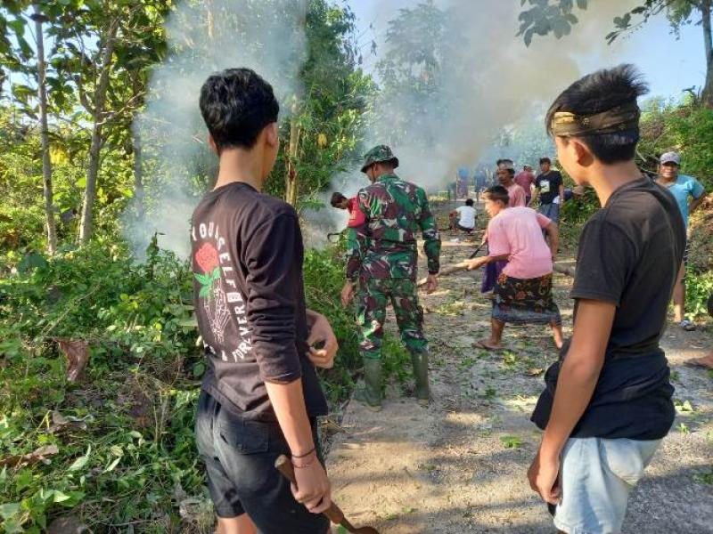 Bali Tribune/ KERJA BAKTI - Babinsa Kodim Klungkung ajak warga gelar kerja bakti.