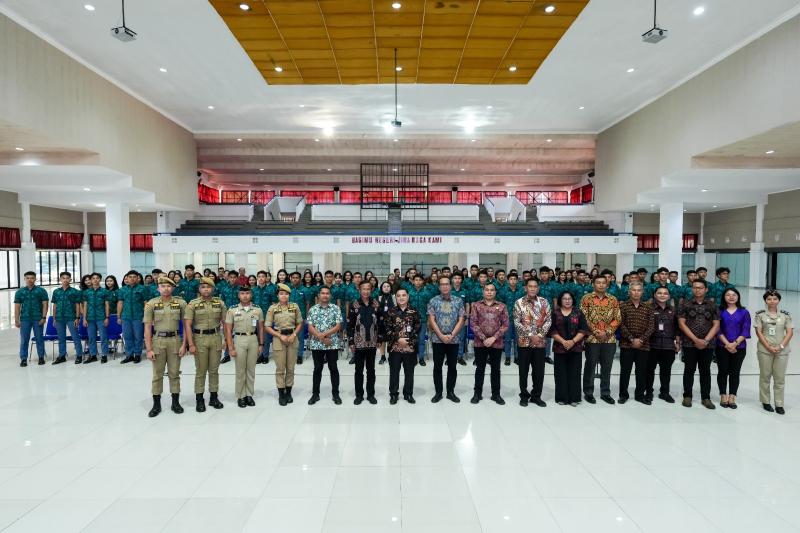 Sementara itu di Balairung Rudini IPDN Jatinangor Wakil Kepala Satuan Bina Pelatihan Heri Puluala mendampingi Rombongan Kesbangpol dan Paskibraka Kabupaten Badung dalam sambutannya mengatakan selamat datang di Kampus IPDN sebagai sekolah tinggi kedinasan dalam naungan Kementerian Dalam Negeri. “Terimakasih atas kepercayaannya memilih kampus IPDN dalam studi bandingnya kami berharap nantinya adik-adik yang hadir disini dapat mengemban pendidikan disini dan dapat memberikan motivasi yang besar. IPDN merupakan sekolah bording school yang memiliki pola pendidikan pengajaran, pelatihan, dan pengasuhan yang bagaimana tiga pilar ini menjadi pondasi para peserta didik.” kata Heri