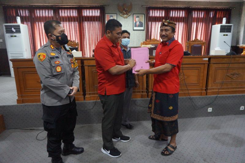 Tiba di Gedung DPRD, Prajuru Adat Bugbug dan ratusan warga yang dipimpin oleh Bendesa Adat Bugbug terpilih I Nyoman Purwa Ngurah Arsana tersebut diterima oleh Ketua DPRD Karangasem I Wayan Suastika di Ruang Rapat Gabungan Komisi, Lantai II Gedung DPRD.