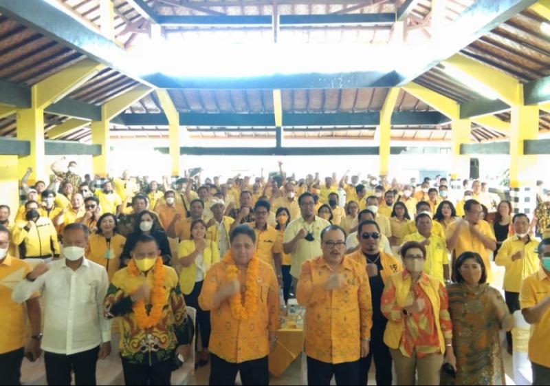 Bali Tribune / KADER GOLKAR - Ketua Umum Partai Golkar, Airlangga Hartarto (AH), bersama kader Golkar Bali