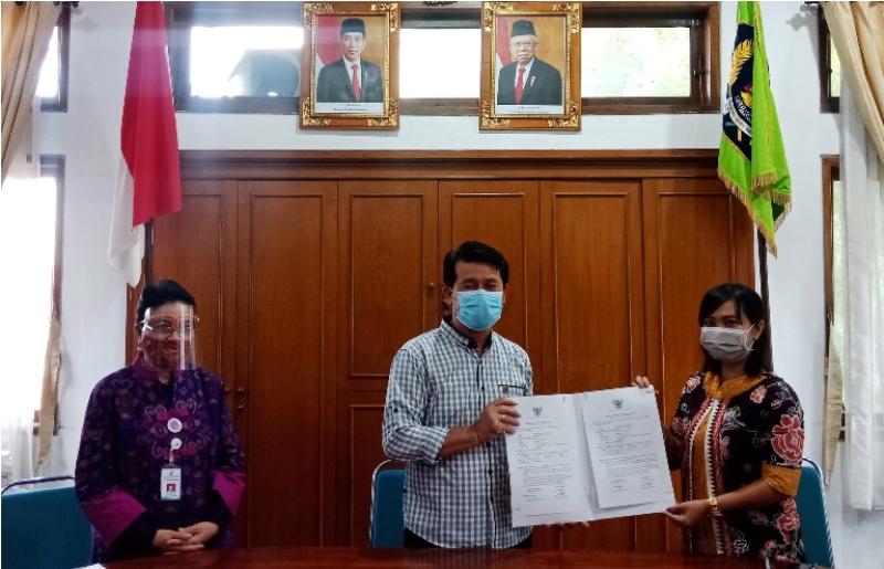 Bali Tribune/ TERIMA - Bupati Suwirta menerima bantuan KIO3 dari Badan POM Denpasar.