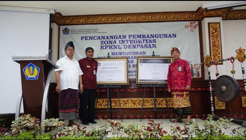 Melalui Nota Dinas Sekretaris DJKN Nomor: 1329/KN.1/2018 tanggal 25 Oktober 2018, KPKNL Denpasar bersama 19 unit kerja di lingkungan DJKN terpilih sebagai Kantor Peserta Penilaian Wilayah Bebas Korupsi dan Wilayah Birokrasi Bersih dan Melayani. "Selanjutnya, kami mohon dukungan dan doa restu dari seluruh stakeholders  dan mohon Bimbingan dari Bapak Kakanwil DJKN Bali Nusra, agar kami dapat melaksanakan dan memenuhi amanat mewujudkan pembangunan zona integritas menuju Wilayah Bebas Korupsi dan Wilayah Birokrasi Bersih Melayani sesuai dengan Peraturan Menteri PAN dan RB Nomor 60 tahun 2012 dan KMK  Nomor 426/KMK.01/2017 Tentang Pedoman Pembangunan dan Penilaian Zona Integritas  menuju WBK di Lingkungan Kementerian Keuangan," ujar Kepala KPKNL Denpasar, Wahyu Nendro disela acara.