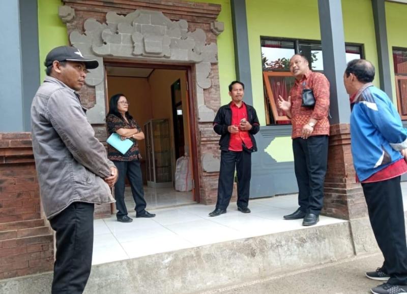 Bali Tribune/ TURUN - Kabid Dikdas Disdikpora Bangli Wayan Gede Wirajaya saat turun ke SMP 6 Kintamani.