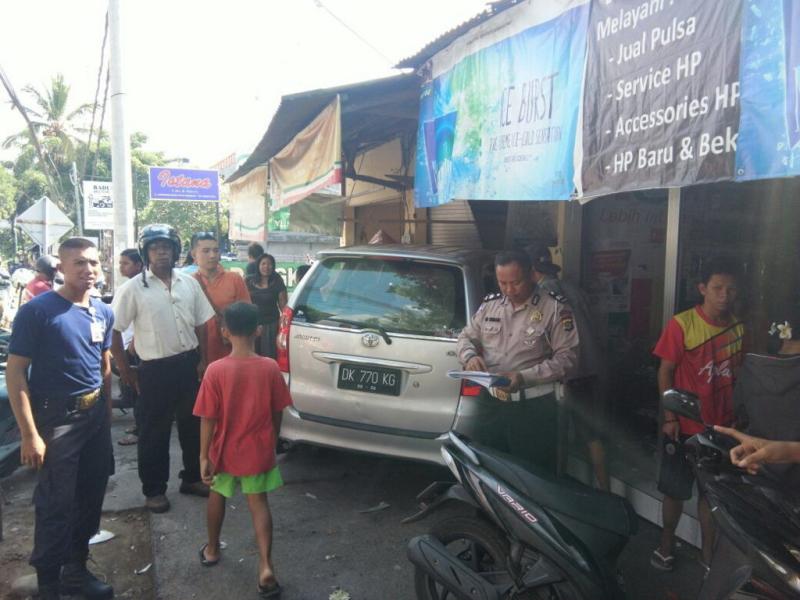 SERUDUK - Avanza seruduk ruko di jalan simpang Laksamana-Serma Karma KM 3-4, Desa Baktiseraga, Buleleng, Senin (7/5).