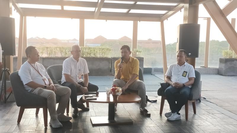 Bali Tribune/PREDIKSI - Pengelola Bandara Internasional I Gusti Ngurah Rai memaparkan prediksi pergerakan penumpang pada periode Lebaran 2026 saat Media Gathering yang digelar di Bandara Internasional I Gusti Ngurah Rai, Kuta, Badung, Minggu (8/3/2026).