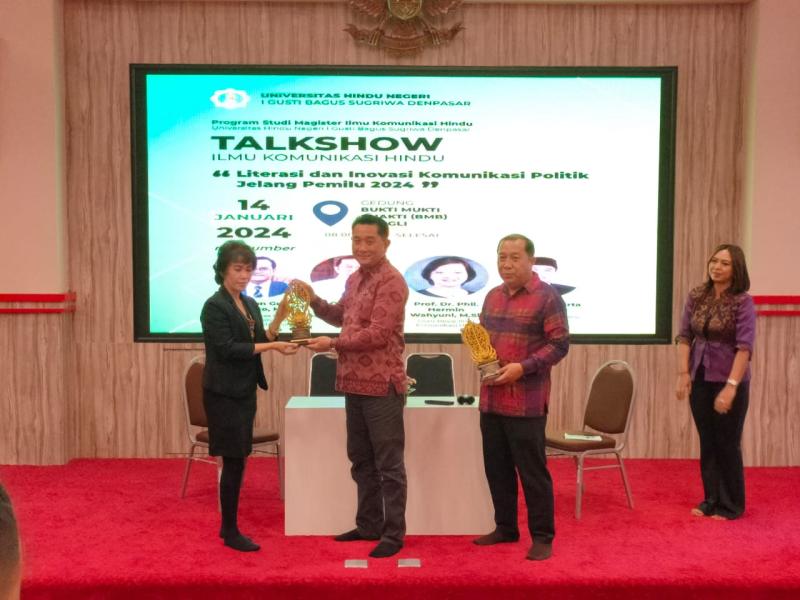 balitribune.co.id | Bangli - Menyambut Pemilihan Umum 2024, literasi dan inovasi dalam komunikasi politik menjadi fokus utama dalam talkshow yang digelar Kampus Pascasarjana, Program Ilmu Komunikasi Hindu, UHN IGB Sugriwa, Sabtu (14/1).