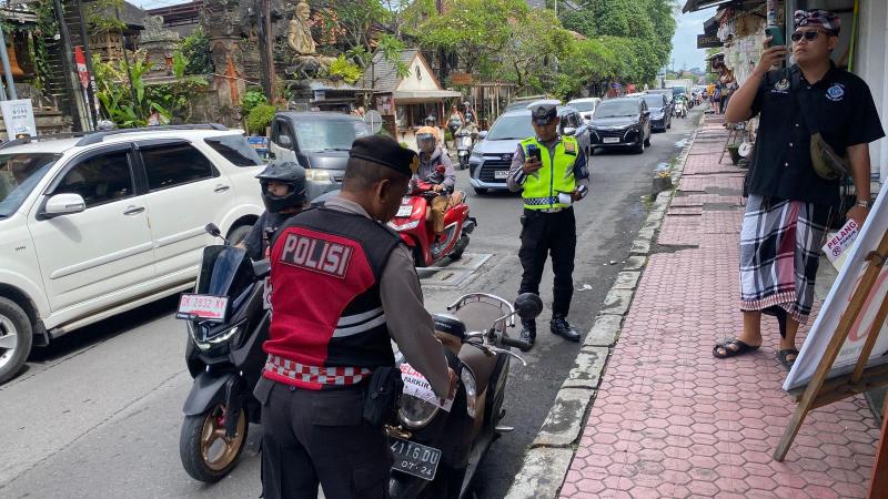 Selasa (28/4/2026), jajaran Polsek Ubud bersama tim gabungan memfokuskan penertiban parkir liar di sepanjang Jalan Raya Ubud, Kabupaten Gianyar. Amelibatkan unsur Polsek Ubud, Satlantas Polres Gianyar, Dinas Perhubungan Kabupaten Gianyar, serta Pecalang Desa Adat Ubud. Usai pengarahan, tim gabungan melakukan penertiban terhadap kendaraan yang parkir di badan jalan. Dalam kegiatan tersebut, petugas memberikan teguran dan edukasi kepada para pelanggar. Selain itu, sebanyak 15 kendaraan tercatat dikenakan sanksi tilang elektronik (ETLE), serta 25 pelanggar diberikan stiker teguran.