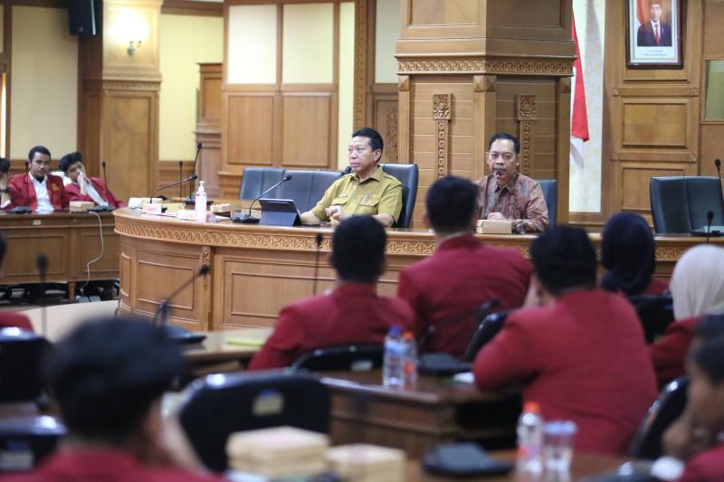 Bali Tribune / KUNJUNGAN - Kabag Keuangan Setwan Badung Putu Thomas Yuniartha saat menerima mahasiswa UMY pada Senin (8/1).