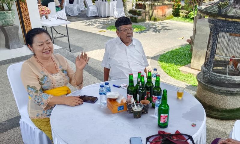 Bali Tribune / SYUKURAN - Mantan Bupati Karangasem IGA Mas Sumatri bersama suami acara syukuran hasil Pileg