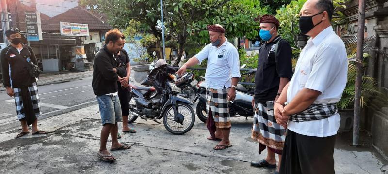 Bali Tribune/ Masker - Kelurahan Pedungan bersama Satgas melakukan tindakan tegas atau razia bagi warga yang tidak memakai masker yang ingin masuk wilayah Kelurahan Pedungan.