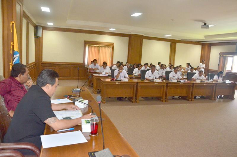 Raker dipimpin Ketua Komisi I Wayan Suyasa didampingi Wakil Ketua Gusti Anom Gumati serta sejumlah anggota seperti Made Sudarmaja, Made Ponda Wirawan, Made Oka Suadnyana serta Nyoman Ardana. Dari pihak OPD hadir Kepala BPM PTSP Made Agus Aryawan, Kadis Kearsipan dan Perpustakaan Wayan Kristiani, Kadis Infokom Weda Darmaja, Kepala Kesbangpol Linmas Nyoman Suendi, wakil dari Kepala BKD SDM, Kadis Kependudukan dan Catatan Sipil Nyoman Soka, Kabag Tapem AA Wardika serta Kabag Hukum Komang Budi Argawa.