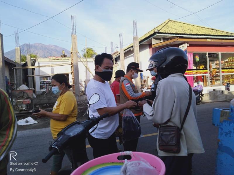 balitribune.co.id | Amlapura - Setelah sebelumnya membagikan ribuan masker kain di Pasar Karangsokong, Subagan, beberapa waktu lalu, BPBD Karangasem bersinergi dengan relawan Forum Pengurangan Resiko Bencana (FPRB) Minggu (22/8/2021) kembali membagikan ribuan masker kepada masyarakat yang membutuhkan di Pasar Rubaya, Kecamatan Kubu, Karangasem.