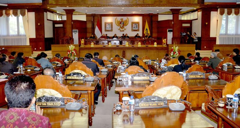 BALI TRIBUNE - Pembangunan Bali ke depan akan dilakukan dengan terpola, terencana dan menyeluruh dengan melibatkan pemerintah Kabupaten/Kota. Pemerintah Provinsi Bali akan duduk bersama dengan pemerintah Kabupaten/Kota untuk mencapai prioritas yang sama. Hal ini disampaikan Gubernur Bali Wayan Koster pada Rapat Paripurna ke-2 DPRD Provinsi Bali dengan agenda Penyampaian Penjelasan Kepala Daerah terhadap Raperda tentang perubahan atas Perda No 6 Tahun 2009 tentang RPJPD Provinsi Bali tahun 2005-2025 menjadi RPJPD Semesta Berencana Provinsi Bali Tahun 2005-2025 dan Raperda tentang RPJMD Semesta Berencana Provinsi Bali 2018-2023 di Gedung DPRD Bali, Denpasar, Senin (14/1). Dalam penjelasan Gubernur tentang kedua Raperda tersebut, Koster mengatakan pembangunan Bali dilaksanakan dengan konsep Pola Pembangunan Semesta Berencana (PPSB) yang berlangsung secara sistematis, massif, dan dinamis dalam tataran lokal, nasional dan global. “Untuk mewujudkan Bali Era Baru, penyelenggaraan pembangunan Bali harus dilakukan dengan paradigma/pendekatan yang meliputi berbagai aspek,” ujarnya. Pertama, kata Koster, Pembangunan bersifat Holistik. Membangun seluruh wilayah Bali secara terpola, terencana, terarah dan terintegrasi yang memastikan adanya keseimbangan, pemerataan, dan keadilan pembangunan antar wilayah Kabupaten/Kota se-Bali. Kedua, ia melanjutkan, Pembangunan bersifat integratif. “Pemerintah Provinsi Bali harus membangun kabupaten/kota, bukan membangun di Kabupaten/Kota secara parsial dengan tujuan, sasaran, dan obyek yang berbeda antara Provinsi dengan Kabupaten/Kota,” jelasnya. Untuk itu, ia menambahkan, proses perencanaan harus dilakukan bersama-sama oleh Pemerintah Provinsi dengan Pemerintah Kabupaten/Kota. Ketiga, pembangunan berbasis perencanaan yang bersifat sinergis dalam konteks kepentingan membangun kabupaten/kota se-Bali, yang wilayah kewenangannya berada di Pemerintah Kabupaten/Kota. “Sehingga Pemerintah Provinsi harus lebih banyak berperan sebagai koordinator, regulator, dan fasilitator, bukan sebagai operator langsung, kata Gubernur asal Buleleng ini. Keempat, Pembangunan Berbasis Kepemimpinan Kultural. Ia menjelaskan, Gubernur Bali sebagai Kepala Pemerintahan di daerah dan perwakilan Pemerintah Pusat di daerah harus menerapkan kepemimpinan yang lebih mengedepankan kepemimpinan kultural, bukan formalistik yang bersifat hierarki dan struktural dalam memimpin pembangunan Bali yang di dalamnya terdapat Bupati/Walikota yang memiliki kewenangan sebagaimana diatur dalam peraturan perundang-undangan; Kelima, Pembangunan dengan pendekatan Satu Kesatuan Wilayah. Bali yang wilayahnya sangat kecil dan memiliki sumber daya sangat terbatas, maka pembangunan Bali harus dilakukan dengan pendekatan pembangunan dalam satu kesatuan wilayah; satu pulau, satu pola, dan satu tata kelola. Dan Keenam, Pembangunan yang Berpihak pada Kepentingan Bali. Pembangunan Bali dalam berbagai sektor, khususnya yang berkaitan dengan kepariwisataan, maka untuk menjawab adanya berbagai tantangan dan permasalahan yang bersifat lokal, nasional, dan global diperlukan kepemimpinan yang lurus, lascarya, prinsipil, berani dan tegas. Bersikap lurus dalam mengambil posisi terutama terkait penegakan peraturan perundang-undangan, kepemimpinan yang berani dalam nindihin Gumi Bali, guna menjaga dan memelihara Genuine Bali; termasuk kepemimpinan yang berani melakukan terobosan kebijakan baru terhadap segala upaya untuk memajukan Bali. Dalam rapat paripurna yang dipimpin oleh Ketua DPRD Bali Nyoman Adi Wiryatama ini, Gubernur Koster hadir didampingi Wakil Gubernur Tjokorda Oka Artha Ardhana Sukawati (Cok Ace) dan dihadiri pula Sekda Dewa Made Indra dan jajaran kepala OPD Pemprov Bali.