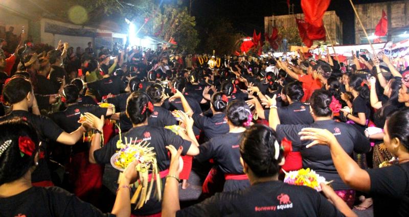Ribuan warga Kuta dan Kuta Selatan tampak menyambut kehadiran pasangan Koster-Ace.