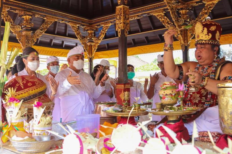 balitribune.co.id | Negara - Puncak Pujawali di Pura Niti Praja Pemkab Jembrana jatuh pada Rahina Purnama Kapitu, Sabtu (18/12). Selain rangkaian upakara dan persembahyangan, juga dilaksanakan upacara Pawintenan Saraswati. Upacara ini diikuti oleh seluruh pejabat di Pemkab Jembrana mulai dari Bupati Jembrana, I Nengah Tamba dan wakilnya I Gede Ngurah Patriana Krisna hingga pejabat administrator/eselon III di seluruh OPD.