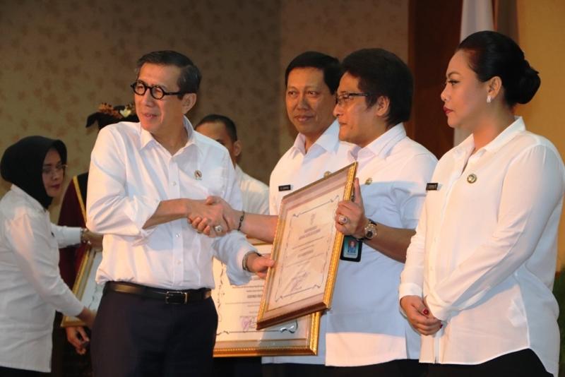 BALI TRIBUNE - Menteri Hukum dan Hak Asasi Manusia (HAM) RI Yasonna H. Laoly meresmikan 14 desa/kelurahan sadar hukum di Puspem Badung, Rabu (8/8) kemarin. Sebanyak 10 diantaranya berasal dari Kabupaten Badung, dan empat sisanya adalah dari Kabupaten Tabanan. Keempat belas desa/kelurahan tersebut diantaranya di Kabupaten Badung meliputi Desa Bongkasa Pertiwi, Desa Kutuh, Desa Ungasan, Kelurahan Tanjung Benoa, Kelurahan Kuta, Kelurahan Kedonganan, Kelurahan Seminyak, Kelurahan Kerobokan Kaja, Kelurahan Tuban dan Kelurahan Kerobokan Kelod. Sementara untuk Kabupaten Tabanan adalah Desa Kesiut, Desa Tangguntiti, Desa Belimbing, serta Desa Jati Luwih. Hadir dalam kesempatan tersebut Gubernur Bali yang diwakili oleh Asisten Pemerintahan dan Kesra Setda Provinsi Bali I.B. Subiksu, unsur Forkompimda Provinsi Bali, Pimpinan Tinggi Madya dan Pratama di Kemeterian Hukum dan Ham RI, Kepala Kantor Wilayah Kementerian Hukum dan Ham Bali Maryoto Sumadi, Bupati Badung I Nyoman Giri Prasta beserta Wakil Bupati Badung I Suiasa, Kepala Kantor Kejaksaan Negeri Badung H. Sunarko, Bupati Tabanan Eka Wiryastuti beserta Camat/Lurah dan Pimpinan Perangkat Daerah Kabupaten Badung maupun Tabanan. Menteri Hukum dan HAM RI Yasonna H. Laoly, mengucapkan terima kasih dan apresiasi yang tinggi kepada Gubernur Bali beserta jajarannya, yang selama ini telah memberikan dukungan serta fasilitas kepada Kantor Wilayah Kementerian Hukum dan HAM Bali, sehingga memudahkan pelaksanaan tugas dan fungsinya. “Saya juga ingin mengungkapkan rasa bangga dapat bertemu langsung dengan Bupati Badung dan Bupati Tabanan, Camat serta Kepala desa/lurah yang telah berhasil mencapai prestasi dalam memasyarakatkan hukum di daerahnya, sehingga mendapatkan predikat sebagai desa/kelurahan Sadar Hukum,” ujarnya sembari turut menyampaikan apresiasi kepada Bupati Badung karena telah memfasilitasi terselenggaranya acara peresmian ini. Menkumham menyadari tidak mudah untuk mencapai predikat desa/kelurahan sadar hukum. Sebab, menurutnya, harus memenuhi beberapa kriteria dan persyaratan yang sangat ketat. “Untuk penilaian tahun 2018 ini digunakan persyaratan baru dengan indikator yang lebih komprehensif sesuai dengan tuntutan perkembangan zaman,” jelasnya. Pihaknya berharap bagi desa/kelurahan yang telah ditetapkan menjadi desa/kelurahan sadar hukum diharapkan tetap dapat mempertahankan prestasinya. “Setiap tahun akan dievaluasi untuk diketahui sejauh mana kriteria penetapan sebagai desa/kelurahan sadar hukum untuk tetap terpenuhi,” tegasnya. Sementara, bagi desa/kelurahan yang belum diresmikan sebagai desa/kelurahan sadar hukum bukan berarti warganya tidak sadar hukum. “Sangat mungkin hal ini terjadi karena belum semua kriteria baru yang sudah kami tetapkan, terpenuhi. Kedepan melalui kerja paralel dan sinergi kami berharap dapat membantu percepatan pemenuhan kriteria tersebut,” tukas Yasonna H. Laoly. Pada bagian lain, Bupati Giri Prasta memberikan apresiasi yang setinggi-tingginya kepada Menteri Hukum dan HAM RI Yasonna H. Laoly dan jajarannya. “Kami di Kabupaten Badung ada 62 desa/kelurahan yang mendapat predikat ini hanya 10, artinya yang 10 inilah yang memenuhi kriteria. Semoga apa yang sudah ditetapkan ini bisa dipertahakan, dan yang belum supaya bisa bekerja keras untuk mencapainya,” kata Bupati. “Kriterianya memang berat, seperti tingkat narkoba tidak ada/menurun, kesadaran untuk taat pajak, kepatuhan dalam tatanan urusan peraturan daerah, administrasi. Tapi kami yakin desa/kelurahan khususnya di Badung yang belum diresmikan menjadi desa/kelurahan sadar hukum, agar bekerja lebih keras lagi,” pesan Bupati. “Kami juga ingin meniru negara-negara maju sekarang, yang tingkat kriminalitasnya betul-betul rendah seperti negara Belanda yang berencana akan menghapus di rumah tahanan besar di tahun 2021, berarti tingkat kesadaran masyarakatnya terhadap hukum sangat tinggi, ini yang harus kita contoh,” tegas Bupati Giri Prasta. Sementara, Kepala Kantor Wilayah Kementerian Hukum dan Ham Bali Maryoto Sumadi, pada kesempatan tersebut menyampaikan, dasar implementasi pembentukan desa/kelurahan sadar hukum yaitu pertama Peraturan Menteri Hukum dan HAM Republik Indonesia No.01-PR.08.10 Tahun 2006 tentang Pola Penyuluhan Hukum sebagaimana telah diubah dengan Peraturan Menteri Hukum dan HAM Republik Indonesia No. M.01-PR.08.10 Tahun 2007. Kedua, Peraturan Kepala Badan Pembinaan Hukum Nasional Republik Indonesia No: PHN.HN.03.05-73 Tahun 2008 tentang Pembentukan dan Pembinaan Keluarga Sadar Hukum dan Desa/Kelurahan Sadar Hukum. “Desa/kelurahaan ditetapkan menjadi desa/kelurahan sadar hukum dengan berpedoman pada indeks desa/kelurahan sadar hukum berdasarkan data kuisioner yang diisi dan dilengkapi dengan bukti terlampir oleh aparat desa/kelurahan atau pejabat yang berwenang. Setiap kriteria harus didukung bukti dari masing-masing instansi yang terkait,” terangnya. Nah, penetapan desa/kelurahan sadar hukum diberikan sesuai dengan tingkat kesadaran hukum yang didasarkan pada jumlah skor yang diperoleh dalam indeks desa/kelurahan sadar hukum. Penilian tingkat kesadaran hukum masyarakat setiap desa/kelurahan akan didasarkan pada jumlah nilai indeks desa/kelurahan sadar hukum yang meliputi empat dimensi yakni dimensi akses informasi hukum, dimensi implementasi hukum, dimensi akses keadilan, dan dimensi demokrasi dan regulasi.