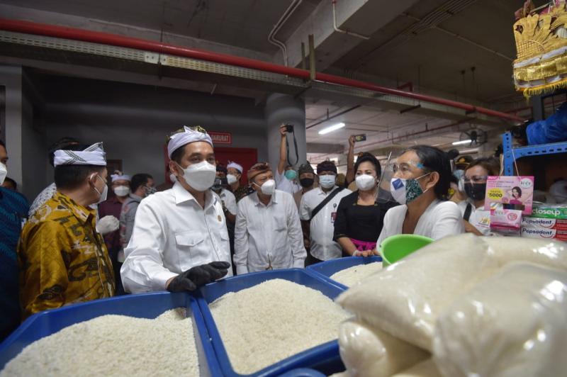 balitribune.co.id | Denpasar – Kondisi harga kebutuhan pokok disalah satu pasar tradisional terbesar di Kota Denpasar, pasar Badung dinilai masih dalam kondisi baik. Hal tersebut bisa dilihat dari rata-rata harga kebutuhan pokoknya tidak ada kenaikan atau tidak ada loncakan harga. Stok juga dinilai masih mencukupi sampai jelang Nataru, itu disampaikan Menteri perdagangan RI Agus Suparmanto, disela kunjungan kerjanya melakukan peninjauan harga barang kebutuhan pokok,Kamis, (26/11) di Pasar Badung, Kota Denpasar,Provinsi Bali.