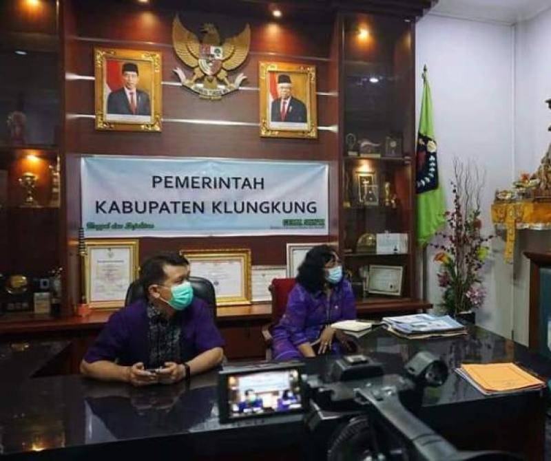 Sebelumnya Bupati Klungkung I Nyoman Suwirta didampingi Kepala Dinas Kesehatan Kabupaten Klungkung dr. Ni Made Adi Swapatni mengikuti video conference dalam rangka kesiapan pelaksanaan vaksinasi Covid-19 dan kesiapan penegakan protokol kesehatan dari ruang kerja Bupati Klungkung, Selasa (5/1). Acara tersebut dipimpin oleh Menteri Dalam Negeri Tito Karnavia serta diikuti Gubernur, Bupati/Walikota seluruh Indonesia.